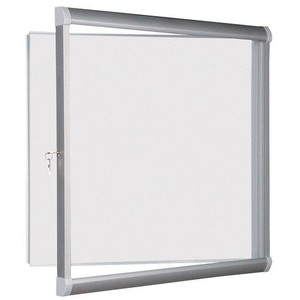 Binnenvitrine met frame van natuurlijk geanodiseerd aluminium voor een moderne uitstraling. Handig: de metalen achterwand is magnetisch, zodat u documenten met magneten kunt plaatsen of kunt schrijven en dit vervolgens kunt uitwissen. Handige en vergrendelbare draaideur voor maximale veiligheid met de mogelijkheid om de opening naar rechts of links te monteren. Toon uw gegevens veilig dankzij de deur van veiligheidsglas.