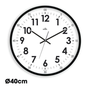 • Klassieke klok met grote diameter, zwart opschrift, witte achtergrond
