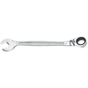 Metrische combinatieratelsleutel, glijdt niet over de moeren, optimale veiligheid. Compact ratelmechanisme, vrijlooprichting omkeerbaar door de sleutel om te draaien. Optimale toegankelijkheid. Terugstelhoek van 5°, oog en vork onder een hoek van 15°. Uiterlijk: verchroomd gesatineerd.