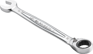 Facom ringsteeksleutel, lengte 320mm, rateluitvoering, sleutelwijdte steek 24mm, sleutelwijdte steek (inch) 15/16", kopbreedte steek 51mm, kopbreedte dop/ring/ratel 46mm, kophoogte steek 10mm, gebogen, geschikt voor wringstaaf, 12 hoeken, oppervlaktebescherming verchroomd, gewicht 414g,