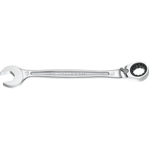 Ultra-Grip ratelringsteeksleutel: klemring op het oog + inkeping tegen het doordraaien op de vork. Glijdt niet over de moeren, optimale veiligheid. Compact, d.m.v. een hendel omkeerbaar ratelmechanisme. Betere toegankelijkheid. Terugstelhoek 5° (7.5° voor de maat 6 mm; 6° voor de maten 7, 8 en 9 mm). Betere productiviteit. Ringkop en vork 15° gebogen. Metrische maten: 6 tot 41 mm. Uitvoering: verchroomd, gesatineerd.