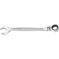 Ratelmechanisme aan beide zijden: sneller werken. Vork met ratelmechanisme: rateleffect bij volledige inschakeling en naderingsfase bij halve inschakeling. Veelzijdigheid. Bevestigingsring op het oog. Geen slippen aan de moeren, optimale veiligheid. Compact ratelmechanisme, omkeerbaar door hendel. Betere toegankelijkheid. 5° terugloophoek (6° voor maat 8 mm). Verhoogde productiviteit. Oog en vork schuin onder een hoek van 15°. Metrische afmetingen: 8 tot 19 mm. Presentatie: satijnchroom.