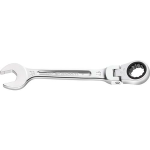Scharnierende steekringratelsleutels: voor moeilijk bereikbare moeren. Compact, d.m.v. het omkeren van de sleutel omkeerbaar ratelmechanisme. Terugstelhoek van 5° (6° bij de maten 8 en 9 mm). Scharnierende ringkop 180°. Sleutel 15° gebogen. Metrische maten: van 8 tot 19 mm. Uitvoering: verchroomd, gesatineerd.