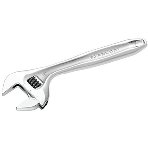 Tijdwinst: de bewegende bek is eenvoudig en snel te verstellen op de moer dankzij het verstelwieltje. 3 stappen: - trek aan het verstelwieltje: de bewegende bek komt onmiddellijk vrij. - verplaats de bewegende bek met de hand om deze aan de gewenste maat aan te passen. - gebruik, indien mogelijk, het traditionele verstelwieltje voor een zeer nauwkeurige aanpassing. 2 tot 3 keer sneller dan een standaard Engelse sleutel. Bek met fijn profiel voor een betere toegankelijkheid. Extra brede opening voor een nog grotere inzetbaarheid. Graadverdeling in mm op een zijde. Uitvoering: glanzend verchroomd huis.