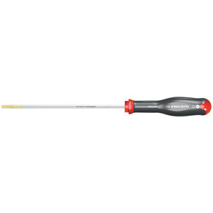 Schroevendraaier met cilindervormig lemmet voor toegang in putten. Inline thermische behandeling: + 100% langere levensduur en + 100% weerstand. Materiaal van de handgreep: Softgrip voor meer comfort, altijd bestand tegen chemische producten. Behandeling tri-coating van het lemmet (zink-nikkel-chroom): 4 keer zo goed bestand tegen corrosie. Machinale bewerking met numerieke controle: betere aanpassing van de schroef door het koppel te vergroten en slijtage te beperken.