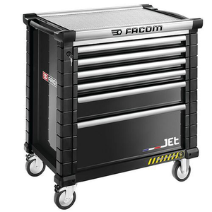 Gereedschapswagen JET6M4 met vergrendeling, Max. belasting: 1000 kg, Max. belasting per lade: 175 kg, Totale hoogte: 1005 mm, Aantal laden: 6, Totale breedte: 1004 mm, Geleverd met gereedschap: nee, Soort opbergmeubel: Gereedschapswagen, Totale diepte: 575 mm, Kleur: Zwart, Breedte lade: 759 mm, Materiaal: Aluminium, Gewicht: 109 kg, Type nr.: JET.6NM4ASPF, Lade hoogte: 60 mm, Totale inhoud: 205 L, Zwenkwiel Ø: 125 mm, Aantal gereedschappen: 0, Model: JET.6NM4AS