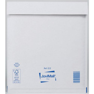 Luchtkussenenvelop Jovimail plus van versterkt wit kraftpapier 139 gr/m2 met noppenfolie. Gemaakt van 80% gerecycled materiaal (gerecycled papier). Bekleding aan de binnenkant met noppen met buffertechnologie JoviCap. Handig dankzij zelfklevende klep. Sterkere, hardere kwaliteit en ideaal voor kwetsbare producten.
