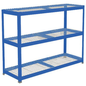 Zware stelling Manutan Rapid 1, Legbord materiaal: Staal, Hoogte: 1980 mm, Aantal niveaus: 3, Aantal legborden: 3, Type legbord: Gerasterd, Breedte: 1525 mm, Diepte: 455 mm, Coating: Epoxy, Type element: Zelfstandig, Max. belasting per niveau: 700 kg, Kleur juk: Blauw, Kleur staander: Blauw, Kleur ligger: Blauw, Legbord kleur: Zilver/verzinkt, RAL: 5019, Stelling voor: Reinigingsproducten, Configureerbaar: ja, Stelling lijn: Manutan Rapid 1, Max. belasting: 2100 kg, Montage: Zelfbouw, Ligger materiaal: Staal, Staaldikte staander: 2 mm, Frame materiaal: Staal, Ligger breedte: 1525 mm, Aantal liggers: 6, Aantal jukken: 2, Dikte legbord: 11 mm, Type stelling: Zwaarlast stelling, Geen gereedschap nodig: ja