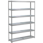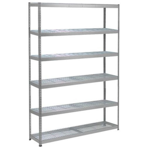 Zware stelling Manutan Rapid 1, Legbord materiaal: Staal, Hoogte: 2440 mm, Aantal niveaus: 6, Aantal legborden: 6, Type legbord: Gerasterd, Breedte: 1525 mm, Diepte: 455 mm, Coating: Verzinkt, Type element: Zelfstandig, Max. belasting per niveau: 700 kg, Kleur juk: Zilver/verzinkt, Kleur staander: Zilver/verzinkt, Kleur ligger: Zilver/verzinkt, Legbord kleur: Zilver/verzinkt, RAL: 7001, Stelling voor: Reinigingsproducten, Configureerbaar: ja, Stelling lijn: Manutan Rapid 1, Max. belasting: 2800 kg, Montage: Zelfbouw, Ligger materiaal: Staal, Staaldikte staander: 2 mm, Frame materiaal: Staal, Ligger breedte: 1525 mm, Aantal liggers: 12, Aantal jukken: 2, Dikte legbord: 11 mm, Type stelling: Zwaarlast stelling, Geen gereedschap nodig: ja