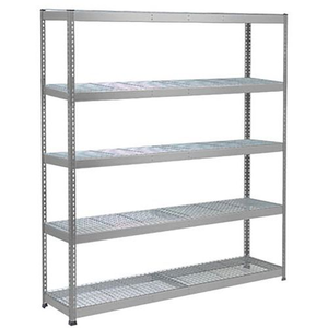 Zware stelling Manutan Rapid 1, Legbord materiaal: Staal, Hoogte: 2440 mm, Aantal niveaus: 5, Aantal legborden: 5, Type legbord: Gerasterd, Breedte: 1525 mm, Diepte: 610 mm, Coating: Epoxy, Type element: Zelfstandig, Max. belasting per niveau: 700 kg, Kleur juk: Grijs, Kleur staander: Grijs, Kleur ligger: Grijs, Legbord kleur: Zilver/verzinkt, RAL: 7032, Stelling voor: Reinigingsproducten, Configureerbaar: ja, Stelling lijn: Manutan Rapid 1, Max. belasting: 2800 kg, Montage: Zelfbouw, Ligger materiaal: Staal, Staaldikte staander: 2 mm, Frame materiaal: Staal, Ligger breedte: 1525 mm, Aantal liggers: 10, Aantal jukken: 2, Dikte legbord: 11 mm, Type stelling: Zwaarlast stelling, Geen gereedschap nodig: ja