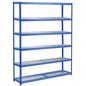 Zware stelling Manutan Rapid 1, Legbord materiaal: Staal, Hoogte: 2440 mm, Aantal niveaus: 6, Aantal legborden: 6, Type legbord: Gerasterd, Breedte: 1525 mm, Diepte: 610 mm, Coating: Epoxy, Type element: Zelfstandig, Max. belasting per niveau: 700 kg, Kleur juk: Blauw, Kleur staander: Blauw, Kleur ligger: Blauw, Legbord kleur: Zilver/verzinkt, RAL: 5019, Stelling voor: Reinigingsproducten, Configureerbaar: ja, Stelling lijn: Manutan Rapid 1, Max. belasting: 2800 kg, Montage: Zelfbouw, Ligger materiaal: Staal, Staaldikte staander: 2 mm, Frame materiaal: Staal, Ligger breedte: 1525 mm, Aantal liggers: 12, Aantal jukken: 2, Dikte legbord: 11 mm, Type stelling: Zwaarlast stelling, Geen gereedschap nodig: ja