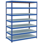 Archiefstelling Manutan Rapid 1, Max. belasting per legbord: 450 kg, Hoogte: 2440 mm, Aantal legborden: 7, Type legbord: Massief, Breedte: 1525 mm, Diepte: 610 mm, Coating: Epoxy, Type element: Zelfstandig, Type juk: Open, Legbord materiaal: Staal, Kleur staander: Blauw, Kleur ligger: Blauw, Legbord kleur: Zilver/verzinkt, Configureerbaar: ja, Stelling lijn: Manutan Rapid 1, Max. belasting: 2800 kg, Montage: Zelfbouw, Aantal staanders: 4, Type stelling: Stellingen voor archiefruimte, Geen gereedschap nodig: ja