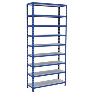 Archiefstelling Manutan Rapid 2, Max. belasting per legbord: 280 kg, Hoogte: 1980 mm, Aantal legborden: 9, Type legbord: Massief, Breedte: 915 mm, Diepte: 305 mm, Coating: Epoxy, Type element: Zelfstandig, Type juk: Open, Legbord materiaal: Staal, Kleur staander: Blauw, Kleur ligger: Blauw, Legbord kleur: Zilver/verzinkt, RAL: 5019, Configureerbaar: ja, Stelling lijn: Manutan Rapid 2, Montage: Zelfbouw, Aantal staanders: 4, Type stelling: Stellingen voor archiefruimte, Geen gereedschap nodig: ja