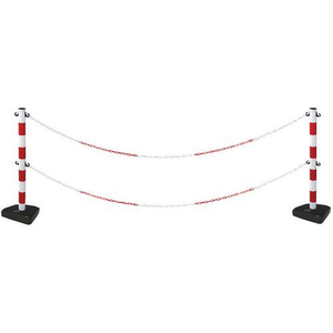 Paal met dubbele ketting op sokkel, Totale hoogte: 900 mm, Gebruiksomgeving: Binnen e Buitenterrein, Gebruik: Indoor/outdoor goederenbehandeling, Kleur: Rood/wit, Ketting Ø: 6 mm, Geleverd met ketting: ja, Type paal: Met chain, Materiaal: PVC, Special Covid-19: nee