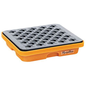 Opvangbak laboratorium vierkant zonder rooster, Roostermat: ja, Inhoud opvangbak: 10 L, Kleur: Oranje, Rooster materiaal: Polyethyleen, Totale lengte: 415 mm, Totale breedte: 445 mm, Totale hoogte: 90 mm, Materiaal: Polyethyleen van hoge dichtheid, Gewicht: 2.2 kg, Max. statisch draagvermogen: 35 kg, Nestbaar: nee, Recyclebare verpakking: Ja - 100%, Recyclebaar product: Ja - 100%, Zuurbestendig: ja, Waterige oplossing: ja, Koolwaterstof oplosmiddelen: ja