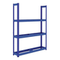 Bandenstelling Manutan Rapid 1, Max. belasting per niveau: 500 kg, Hoogte: 1980 mm, Aantal verdiepingen: 3, Breedte: 1830 mm, Diepte: 455 mm, Coating: Epoxy, Type element: Zelfstandig, Model: Enkelzijdig, Kleur staander: Blauw, Kleur ligger: Blauw, RAL: 5019, Stelling voor: Banden, Configureerbaar: ja, Stelling lijn: Manutan Rapid 1, Max. belasting: 1500 kg, Montage: Zelfbouw, Materiaal: Staal, Type stelling: Bandenstelling, Geen gereedschap nodig: ja