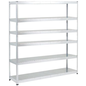 Zware stelling Manutan Rapid 1, Legbord materiaal: Staal, Hoogte: 2440 mm, Aantal niveaus: 6, Aantal legborden: 6, Type legbord: Massief, Breedte: 1830 mm, Diepte: 610 mm, Coating: Epoxy, Type element: Zelfstandig, Max. belasting per niveau: 500 kg, Kleur juk: Lichtgrijs, Kleur staander: Lichtgrijs, Kleur ligger: Lichtgrijs, Legbord kleur: Zilver/verzinkt, RAL: 7032, Stelling voor: Losse onderdelen, Configureerbaar: ja, Stelling lijn: Manutan Rapid 1, Max. belasting: 2000 kg, Montage: Zelfbouw, Ligger materiaal: Staal, Staaldikte staander: 2 mm, Frame materiaal: Staal, Ligger breedte: 1830 mm, Aantal liggers: 12, Aantal jukken: 2, Dikte legbord: 11 mm, Type stelling: Zwaarlast stelling, Geen gereedschap nodig: ja