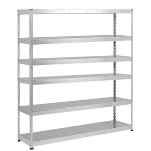Zware stelling Manutan Rapid 1, Legbord materiaal: Staal, Hoogte: 2440 mm, Aantal niveaus: 6, Aantal legborden: 6, Type legbord: Massief, Breedte: 1830 mm, Diepte: 455 mm, Coating: Verzinkt, Type element: Zelfstandig, Max. belasting per niveau: 500 kg, Kleur juk: Zilver/verzinkt, Kleur staander: Zilver/verzinkt, Kleur ligger: Zilver/verzinkt, Legbord kleur: Zilver/verzinkt, RAL: 7001, Stelling voor: Losse onderdelen, Configureerbaar: ja, Stelling lijn: Manutan Rapid 1, Max. belasting: 2000 kg, Montage: Zelfbouw, Ligger materiaal: Staal, Staaldikte staander: 2 mm, Frame materiaal: Staal, Ligger breedte: 1830 mm, Aantal liggers: 12, Aantal jukken: 2, Dikte legbord: 11 mm, Type stelling: Zwaarlast stelling, Geen gereedschap nodig: ja