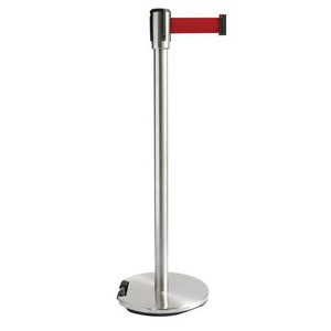 Verchroomde paal met band 2 m, Gebruiksomgeving: Binnen, Band kleur: Rood, Band lengte: 2 m, Gebruik: Indoor goederenbehandeling, Kleur paaltje: Zilver, Type product: Sokkel met wielen, Sokkel Ø: 350 mm, Koord breedte: 48 mm, Totale hoogte paal: 1000 mm, Type paal: Met band, Paal afwerking: Verchroomd, Paal materiaal: Staal, Band materiaal: Polyester, Totale diameter paal: 65 mm