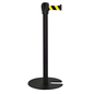 Zwarte paal met band 5 m, Gebruiksomgeving: Binnen, Band kleur: Zwart/geel, Band lengte: 5 m, Gebruik: Indoor goederenbehandeling, Kleur paaltje: Zwart, Sokkel Ø: 360 mm, Totale hoogte paal: 98.5 cm, Type paal: Met band, Paal materiaal: Staal, Totale diameter paal: 6.5 cm, Onderstel kleur: Zwart