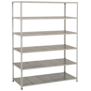 Middelzware stelling Manutan Rapid 2, Max. belasting per legbord: 149 kg, Legbord materiaal: Staal, Hoogte: 1980 mm, Aantal legborden: 6, Type legbord: Massief, Breedte: 1220 mm, Diepte: 455 mm, Coating: Epoxy, Type element: Zelfstandig, Model: Rapid 2, Type juk: Open, Aantal niveaus: 6, Kleur staander: Grijs, Kleur ligger: Grijs, Legbord kleur: Zilver/verzinkt, RAL: 7032, Stelling voor: Losse onderdelen, Configureerbaar: ja, Stelling lijn: Manutan Rapid 2, Afstand verstelbaarheid: 38.1 mm, Montage: Zelfbouw, Frame materiaal: Staal, Montagesysteem: Bevestigingssysteem, Aantal staanders: 4, Type stelling: Halfzware stelling, Geen gereedschap nodig: ja