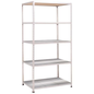 Middelzware stelling Manutan Rapid 2, Max. belasting per legbord: 340 kg, Legbord materiaal: Staal, Hoogte: 1980 mm, Aantal legborden: 5, Type legbord: Massief, Breedte: 915 mm, Diepte: 305 mm, Coating: Verzinkt, Type element: Zelfstandig, Model: Rapid 2, Type juk: Open, Aantal niveaus: 5, Kleur staander: Zilver/verzinkt, Kleur ligger: Zilver/verzinkt, Legbord kleur: Zilver/verzinkt, RAL: 7001, Stelling voor: Losse onderdelen, Configureerbaar: ja, Stelling lijn: Manutan Rapid 2, Afstand verstelbaarheid: 38.1 mm, Montage: Zelfbouw, Frame materiaal: Staal, Montagesysteem: Bevestigingssysteem, Aantal staanders: 4, Type stelling: Halfzware stelling, Geen gereedschap nodig: ja