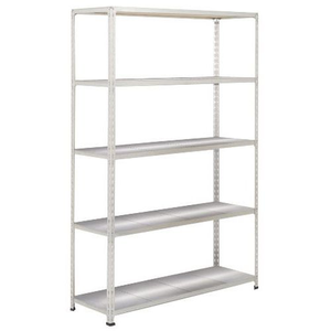 Middelzware stelling Manutan Rapid 2, Max. belasting per legbord: 124 kg, Legbord materiaal: Staal, Hoogte: 1830 mm, Aantal legborden: 5, Type legbord: Massief, Breedte: 1220 mm, Diepte: 455 mm, Coating: Verzinkt, Type element: Zelfstandig, Model: Rapid 2, Type juk: Open, Aantal niveaus: 5, Kleur staander: Zilver/verzinkt, Kleur ligger: Zilver/verzinkt, Legbord kleur: Zilver/verzinkt, RAL: 7001, Stelling voor: Losse onderdelen, Configureerbaar: ja, Stelling lijn: Manutan Rapid 2, Afstand verstelbaarheid: 38.1 mm, Montage: Zelfbouw, Frame materiaal: Staal, Montagesysteem: Bevestigingssysteem, Aantal staanders: 4, Type stelling: Halfzware stelling, Geen gereedschap nodig: ja