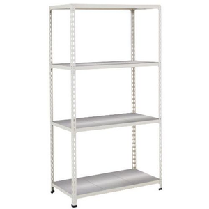 Middelzware stelling Manutan Rapid 2, Max. belasting per legbord: 340 kg, Legbord materiaal: Staal, Hoogte: 1980 mm, Aantal legborden: 4, Type legbord: Massief, Breedte: 915 mm, Diepte: 455 mm, Coating: Verzinkt, Type element: Zelfstandig, Model: Rapid 2, Type juk: Open, Aantal niveaus: 4, Kleur staander: Zilver/verzinkt, Kleur ligger: Zilver/verzinkt, Legbord kleur: Zilver/verzinkt, RAL: 7001, Stelling voor: Losse onderdelen, Configureerbaar: ja, Stelling lijn: Manutan Rapid 2, Afstand verstelbaarheid: 38.1 mm, Montage: Zelfbouw, Frame materiaal: Staal, Montagesysteem: Bevestigingssysteem, Aantal staanders: 4, Type stelling: Halfzware stelling, Geen gereedschap nodig: ja