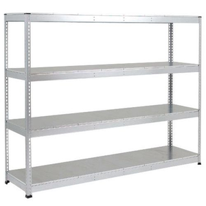Zware stelling Manutan Rapid 1, Legbord materiaal: Staal, Hoogte: 1980 mm, Aantal niveaus: 4, Aantal legborden: 4, Type legbord: Massief, Breedte: 1525 mm, Diepte: 610 mm, Coating: Verzinkt, Type element: Zelfstandig, Max. belasting per niveau: 700 kg, Kleur juk: Zilver/verzinkt, Kleur staander: Zilver/verzinkt, Kleur ligger: Zilver/verzinkt, Legbord kleur: Zilver/verzinkt, RAL: 7001, Stelling voor: Losse onderdelen, Configureerbaar: ja, Stelling lijn: Manutan Rapid 1, Max. belasting: 2100 kg, Montage: Zelfbouw, Ligger materiaal: Staal, Staaldikte staander: 2 mm, Frame materiaal: Staal, Ligger breedte: 1525 mm, Aantal liggers: 8, Aantal jukken: 2, Dikte legbord: 11 mm, Type stelling: Zwaarlast stelling, Geen gereedschap nodig: ja