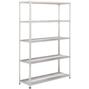 Middelzware stelling Manutan Rapid 2, Max. belasting per legbord: 280 kg, Legbord materiaal: Staal, Hoogte: 1980 mm, Aantal legborden: 5, Type legbord: Massief, Breedte: 1220 mm, Diepte: 455 mm, Coating: Epoxy, Type element: Zelfstandig, Model: Rapid 2, Type juk: Open, Aantal niveaus: 5, Kleur staander: Grijs, Kleur ligger: Grijs, Legbord kleur: Zilver/verzinkt, RAL: 7032, Stelling voor: Losse onderdelen, Configureerbaar: ja, Stelling lijn: Manutan Rapid 2, Afstand verstelbaarheid: 38.1 mm, Montage: Zelfbouw, Frame materiaal: Staal, Montagesysteem: Bevestigingssysteem, Aantal staanders: 4, Type stelling: Halfzware stelling, Geen gereedschap nodig: ja