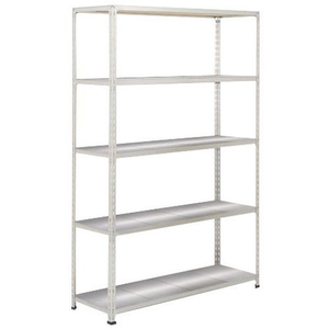 Middelzware stelling Manutan Rapid 2, Max. belasting per legbord: 124 kg, Legbord materiaal: Staal, Hoogte: 1830 mm, Aantal legborden: 5, Type legbord: Massief, Breedte: 1220 mm, Diepte: 610 mm, Coating: Epoxy, Type element: Zelfstandig, Model: Rapid 2, Type juk: Open, Aantal niveaus: 5, Kleur staander: Grijs, Kleur ligger: Grijs, Legbord kleur: Zilver/verzinkt, RAL: 7032, Stelling voor: Losse onderdelen, Configureerbaar: ja, Stelling lijn: Manutan Rapid 2, Afstand verstelbaarheid: 38.1 mm, Montage: Zelfbouw, Frame materiaal: Staal, Montagesysteem: Bevestigingssysteem, Aantal staanders: 4, Type stelling: Halfzware stelling, Geen gereedschap nodig: ja