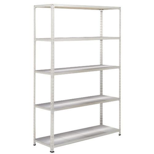 Middelzware stelling Manutan Rapid 2, Max. belasting per legbord: 124 kg, Legbord materiaal: Staal, Hoogte: 1830 mm, Aantal legborden: 5, Type legbord: Massief, Breedte: 1220 mm, Diepte: 380 mm, Coating: Epoxy, Type element: Zelfstandig, Model: Rapid 2, Type juk: Open, Aantal niveaus: 5, Kleur staander: Grijs, Kleur ligger: Grijs, Legbord kleur: Zilver/verzinkt, RAL: 7032, Stelling voor: Losse onderdelen, Configureerbaar: ja, Stelling lijn: Manutan Rapid 2, Afstand verstelbaarheid: 38.1 mm, Montage: Zelfbouw, Frame materiaal: Staal, Montagesysteem: Bevestigingssysteem, Aantal staanders: 4, Type stelling: Halfzware stelling, Geen gereedschap nodig: ja