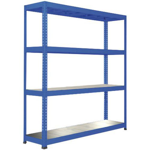 Zware stelling Manutan Rapid 1, Legbord materiaal: Staal, Hoogte: 1980 mm, Aantal niveaus: 4, Aantal legborden: 4, Type legbord: Massief, Breedte: 1525 mm, Diepte: 610 mm, Coating: Epoxy, Type element: Zelfstandig, Max. belasting per niveau: 700 kg, Kleur juk: Blauw, Kleur staander: Blauw, Kleur ligger: Blauw, Legbord kleur: Zilver/verzinkt, RAL: 5019, Stelling voor: Losse onderdelen, Configureerbaar: ja, Stelling lijn: Manutan Rapid 1, Max. belasting: 2100 kg, Montage: Zelfbouw, Ligger materiaal: Staal, Staaldikte staander: 2 mm, Frame materiaal: Staal, Ligger breedte: 1525 mm, Aantal liggers: 8, Aantal jukken: 2, Dikte legbord: 11 mm, Type stelling: Zwaarlast stelling, Geen gereedschap nodig: ja