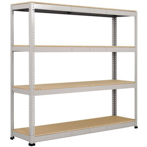 Zware stelling Manutan Rapid 1, Legbord materiaal: Spaanplaat, Hoogte: 2440 mm, Aantal niveaus: 4, Aantal legborden: 4, Type legbord: Massief, Breedte: 2440 mm, Diepte: 610 mm, Coating: Verzinkt, Type element: Zelfstandig, Max. belasting per niveau: 545 kg, Kleur staander: Zilver/verzinkt, Kleur ligger: Zilver/verzinkt, RAL: 7001, Stelling voor: Losse onderdelen, Configureerbaar: ja, Stelling lijn: Manutan Rapid 1, Max. belasting: 2180 kg, Montage: Zelfbouw, Materiaal: Staal, Ligger materiaal: Staal, Staaldikte staander: 2 mm, Gerecyclede verpakkingen: 26 %, Gerecycled product: 26 %, Eco-verantwoordelijke aanpak: ja, Frame materiaal: Staal, Ligger breedte: 2440 mm, Aantal liggers: 8, Aantal jukken: 2, Dikte legbord: 16 mm, Type stelling: Zwaarlast stelling, Geen gereedschap nodig: ja