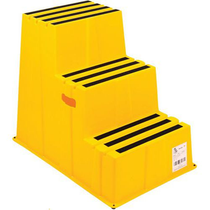 Opstapkrukje antislip, Max. belasting: 230 kg, Aantal treden incl. platform: 3, Toegangshoogte: 2.62 m, Materiaal: Polyethyleen, Kleur: Geel, Totale hoogte: 0.73 m, Totale breedte: 0.58 m, Gewicht: 11.5 kg, Diepte sport: 225 mm, Breedte vloeroppervlak: 580 mm, Diepte vloeroppervlak: 890 mm, Certificering: Frans decreet 96-333