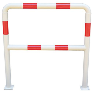 Veiligheidshek met grondplaat Ø 59 mm, Totale hoogte: 1000 mm, Kleur: Rood/wit, Totale lengte: 2000 mm, Paal Ø: 59 mm, Breedte grondplaat: 100 mm, RAL: 9010, Materiaal: Staal, Grondplaat dikte: 5 mm, Gewicht: 11 kg, Bevestiging: Met grondplaat, Lengte grondplaat: 100 mm