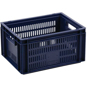 Voor al uw opbergbehoeften in de voedingsmiddelenindustrie. Euronormbak, blauw, met grote stabiliteit bij het stapelen. Goede ventilatie dankzij de open wanden. Eenvoudig in gebruik dankzij de brede open handgrepen. Bestand tegen oliën, vetten en tal van chemische producten.