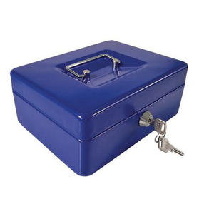 Geldkist Eco, Kleur: Blauw, Breedte: 150 mm, Lengte: 200 mm, Hoogte: 85 mm, Materiaal: Staal, Type sluiting: Met sleutel, Aantal vakken: 3