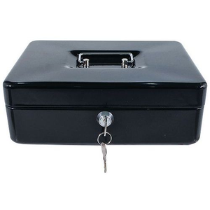 Geldkist Eco, Kleur: Zwart, Breedte: 200 mm, Lengte: 250 mm, Hoogte: 85 mm, Materiaal: Staal, Type sluiting: Met sleutel, Aantal vakken: 4