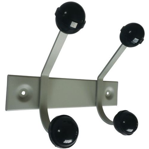 Wandkapstok met 2 bollen, Hoogte: 23 cm, Aantal haken: 2, Kleur: Grijs, Type: Om te schroeven, Lengte rail: 28 cm, Diepte: 14 cm, Materiaal: Kunststof, Kleur ligger: Zwart, Jashaak kleur: Zwart