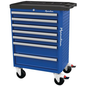 Gereedschapswagen met lades + plateau, Max. belasting per lade: 30 kg, Totale hoogte: 1005 mm, Aantal laden: 7, Totale breedte: 678 mm, Geleverd met gereedschap: nee, Soort opbergmeubel: Gereedschapswagen, Totale diepte: 459 mm, Kleur: Blauw, Materiaal: Staal, Model: 5 lades 568 x 398 x 75 mm, 2 lades 568 x 398 x 154 mm