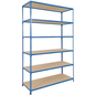 Middelzware stelling Manutan Rapid 2, Hoogte: 1980 mm, Aantal niveaus: 6, Type legbord: Massief, Breedte: 1220 mm, Diepte: 455 mm, Coating: Epoxy, Type element: Zelfstandig, Type juk: Open, Legbord materiaal: Spaanplaat, Aantal legborden: 6, Max. belasting per legbord: 340 kg, Kleur staander: Blauw, Kleur ligger: Blauw, RAL: 5019, Stelling voor: Kunststof en kartonnen dozen, Configureerbaar: ja, Stelling lijn: Manutan Rapid 2, Afstand verstelbaarheid: 38.1 mm, Montage: Zelfbouw, Gerecyclede verpakkingen: 9 %, Gerecycled product: 9 %, Frame materiaal: Staal, Montagesysteem: Bevestigingssysteem, Aantal staanders: 4, Dikte legbord: 16 mm, Type stelling: Halfzware stelling, Geen gereedschap nodig: ja