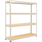 Zware stelling Manutan Rapid 1, Legbord materiaal: Spaanplaat, Hoogte: 1980 mm, Aantal niveaus: 4, Aantal legborden: 4, Type legbord: Massief, Breedte: 1830 mm, Diepte: 915 mm, Coating: Epoxy, Type element: Zelfstandig, Max. belasting per niveau: 720 kg, Kleur staander: Lichtgrijs, Kleur ligger: Lichtgrijs, RAL: 7032, Stelling voor: Zware voorwerpen, Configureerbaar: ja, Stelling lijn: Manutan Rapid 1, Max. belasting: 2880 kg, Montage: Zelfbouw, Materiaal: Staal, Ligger materiaal: Staal, Staaldikte staander: 2 mm, Gerecyclede verpakkingen: 22 %, Gerecycled product: 22 %, Frame materiaal: Staal, Ligger breedte: 1830 mm, Aantal liggers: 8, Aantal jukken: 2, Dikte legbord: 16 mm, Type stelling: Zwaarlast stelling, Geen gereedschap nodig: ja