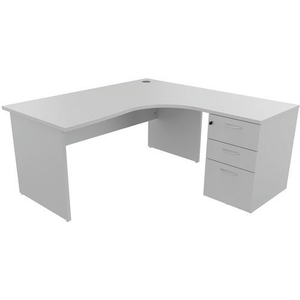 Compact bureau met ladeblok, Type onderstel: L-poot, Montage: Zelfbouw, Totale breedte: 160 cm, Type bureau: Rechter-retourbalie, Type bureaublok: Bureau, Elektrisch systeem: nee, Totale diepte: 152 cm, Tafelblad materiaal: Gemelamineerd, Onderstel kleur: Lichtgrijs, Tafelblad kleur: Lichtgrijs, Bureaudiepte klein: 42 cm, Bureaudiepte groot: 60 cm, Aantal laden: 3, Aantal dossierladen: 1, Productassortiment: Manutan Nadou, Rand materiaal: ABS, Hoogte: 72 cm, Selectie telewerken: nee, Gerecyclede verpakkingen: 30 %, Gerecycled product: 34.50 %, Material des Untergestells: Metaal, Eco-verantwoordelijke aanpak: ja, Dikte tafelblad: 25 mm, PEFC licentie: 10-31-1004, NF Milieu: nee, NF Ergonomische kantoorinrichting: nee, Stijl: Klassiek