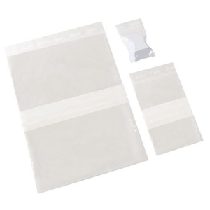 Gripzakjes, Dikte: 50 µm, Materiaal: Polyethyleen, Hoogte: 80 mm, Breedte: 60 mm, Kleur: Transparant, Model: witte stroken, Special Covid-19: nee, Recyclebare verpakking: Ja - 100%, Recyclebaar product: Ja - 100%, Type sluiting: Zip