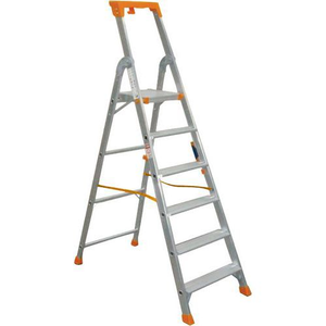 Professionele trap van aluminium, Toegangshoogte: 3.37 m, Totale hoogte: 1.980 m, Platform hoogte: 1.371 m, Aantal treden incl. platform: 6, Lengte platform: 315 mm, Breedte platform: 290 mm, Materiaal: Aluminium, Max. belasting: 150 kg, Gewicht: 9 kg, Diepte sport: 100 mm, Breedte vloeroppervlak: 0.57 m, Lengte vloeroppervlak: 1.20 m, Staander breedte: 22 mm, Staander diepte: 55 mm