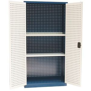 Berg al het kostbare gereedschap in uw werkplaats overzichtelijk op Constructie met geperforeerde bodem en deuren. In hoogte verstelbaar legbord in stappen van 3,6 cm. Vergrendelbare deuren: 2-puntssluiting en cilinderslot. Handige kast dankzij de openingshoek van 180°.