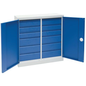 Lage werkplaatskast Magic, Max. belasting: 100 kg, Materiaal: Staal, Totale hoogte: 1000 mm, Aantal laden: 12, Totale breedte: 1000 mm, Totale diepte: 450 mm, Frame kleur: Grijs, Kleur deur: Blauw, Type: Lage kast, Model: Met tussenwand, Aantal deuren: 2, Aantal legborden: 0, RAL: 7035 5010, Geleverd gemonteerd: ja, Max. belasting per legbord: 0 kg, Max. belasting per lade: 100 kg, Recyclebare verpakking: Ja - 100%, Gerecyclede verpakkingen: 100 %, Recyclebaar product: Ja - 100%, Gerecycled product: 20 %, Hoogte lade: 2 x 87 ; 4 x 109 ; 6 x 155 mm