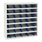 Lage vakkenkast met slijtvaste en krasbestendige poedercoating. Legborden voorzien van 3 cm opstaande rand. Eenvoudig te labelen door etikettenlijst over de gehele breedte. Varieer in uw vakverdeling met per 5 cm verplaatsbare tussenschotjes.