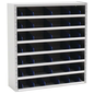 Lage vakkenkast met slijtvaste en krasbestendige poedercoating. Legborden voorzien van 3 cm opstaande rand. Eenvoudig te labelen door etikettenlijst over de gehele breedte. Varieer in uw vakverdeling met per 5 cm verplaatsbare tussenschotjes.